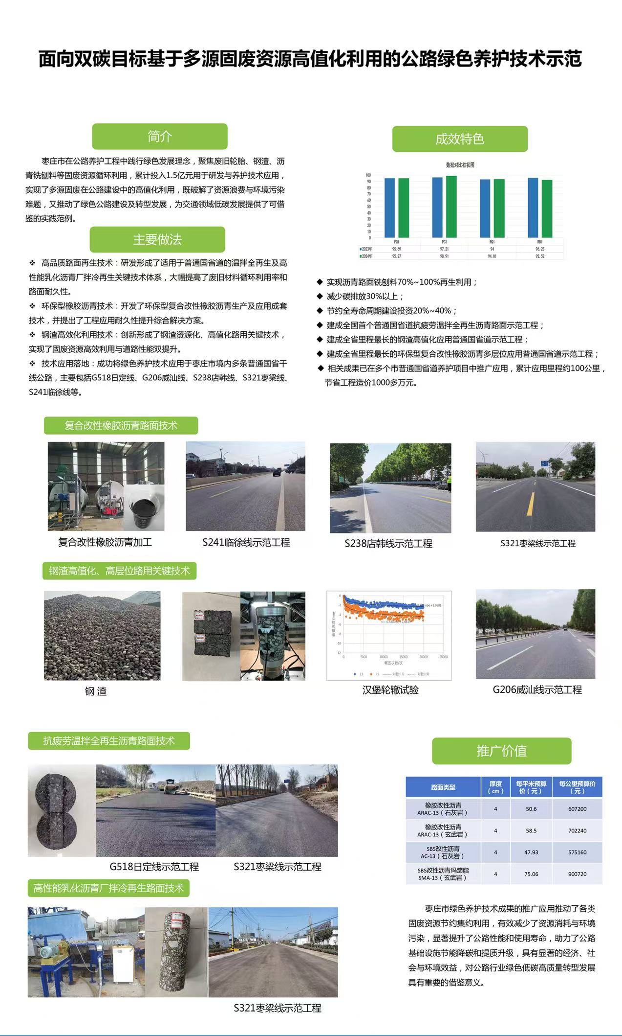近日,省交通运输厅公布2025年度山东省交通运输绿色低碳高质量发展典型案例,市公路和地方铁路事业发展中心联合省交通科学研究院、远通公路工程集团实施的《面向双碳目标基于多源固废资源高值化利用的公路绿色养护技术示范》成功入选,为公路行业绿色低碳高质量转型发展提供了可借鉴的实践范例。